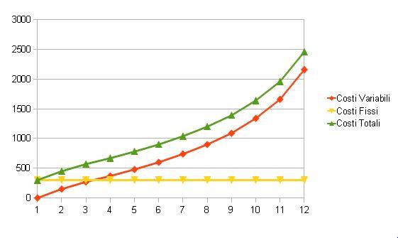 La somma dei costi fissi e dei costi variabili sono i costi totali, e si rappresentano con l'equazione