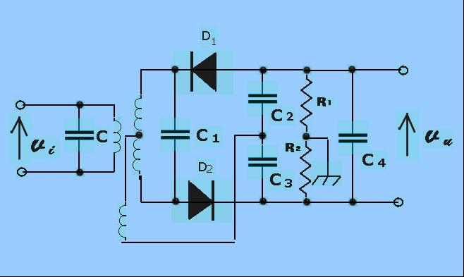 In pratica il discriminatore mi dà una semionda positiva se la frequenza ricevuta supera la frequenza nominale della portante; mi dà, invece, una semionda negativa se la frequenza ricevuta è minore della frequenza nominale della portante. Questo si ottiene facendo due circuiti accordati su frequenze diverse dalla portante; cioè un primo cicruito lo si accorda su frequenze superiori alla portante, ma di poco; un secondo circuito lo si accorda su frequenze di poco inferiori alla portante.