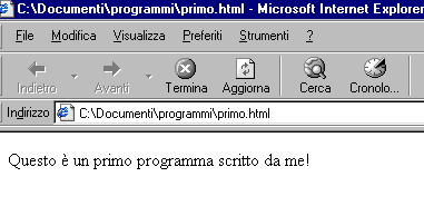Per scrivere del testo basta posizionarlo nel punto giusto del programma. Nel nostro primo programma: primo.html