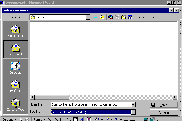 Una volta aperto Word iniziamo a scrivere direttamente il nostro testo del programma, come facciamo abitualmente con i testi normali.
