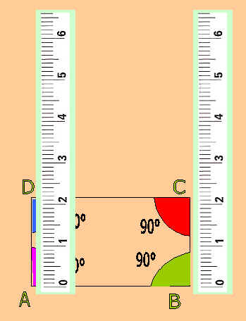 Possiamo misurare mediante un goniometro i quattro angoli della nostra finestra. Notiamo che l'angolo sinistro inferiore misura esattamente 90°.