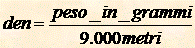 per ottenere il den si prendono come riferimento nove chilometri di filo, cioè 9.000 metri; si pesano sulla bilancia questi 9.000 metri e si fa il rapporto tra peso in grammi e lunghezza in metri e si ottiene il den.