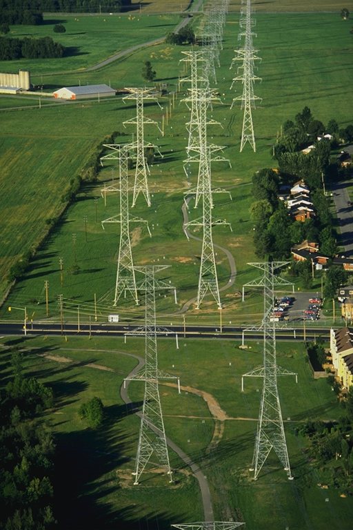 3 - Un trasformatore elettrico, cioè una macchina elettrica che aumenta il valore della tensione, portandola a valori elevati, fino ad oltre i 380.000 volt. Questa tensione alternata viene poi collegata ai fili di un elettrodotto per essere distribuita alle industrie e alle abitazioni.