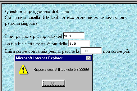In tal modo l'utente del programma sarà costretto a scrivere il pronome suo nel posto giusto. La istruzione html mista javascript diventa: