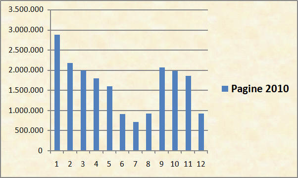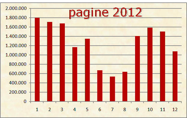 | pagine | 1.222.359 | 1.215.883 | 1.173.286 | 1.256.030 | 1.242.745 | 739.627 | 588.840 | 565.961 | 1.813.548 | 1.832.281 | 1.763.964 | 1.283.641 | 14.698.165 |