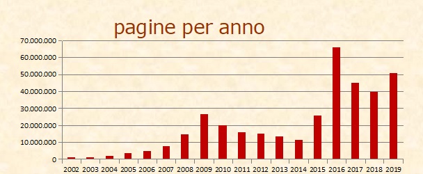 | pagine | 8.804.423 | 6.578.148 | 4.372.900 | 3.501.908 | 3.201.453 | 1.043.907 | 1.056.631 | 1.518.813 | 3.463.542 | 4.180.088 | 4.068.700 | 3.079.597 |