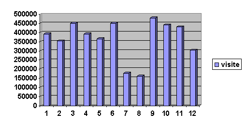 | visite | 485.795 | 349.723 | 313.892 | 288.724 | 263.270 | 165.674 | 126.356 | 147.959 | 332.546 | 345.748 | 349.562 | 184.053 | 3.353.302 |