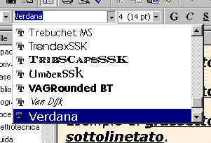 Vi è un altro modo più veloce di scegliere il tipo di carattere, e cioè fare click col mouse nella finestra a scorrimento in cui vi sono tutti i font.