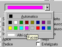 Se si fa click sulla A si sceglie il colore che si vede. Se si fa click sulla freccia si sceglie un altro colore.