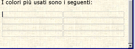 poggiamo il cursore lampeggiante nel punto in cui deve essere inserita la tabella, e cioè dopo le parole: "I colori più usati sono i seguenti:"
